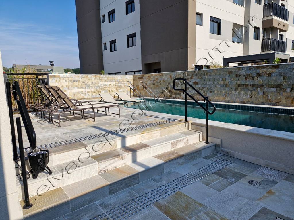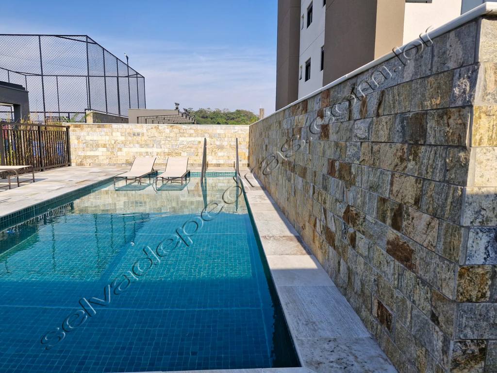 Realizada no CONDOMINIO ALLURE GUANABARA - PATRIANI - CAMPINAS - SP. Piso pedra quartzito São Tomé branco mesclado e parede revestimento de pedra Madeira amarela mesclada serrada. Gostou? Entre em contato!
